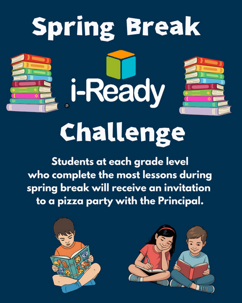 Students at each grade level who complete the most lessons during spring break will receive an invitation to a pizza party with the Principal