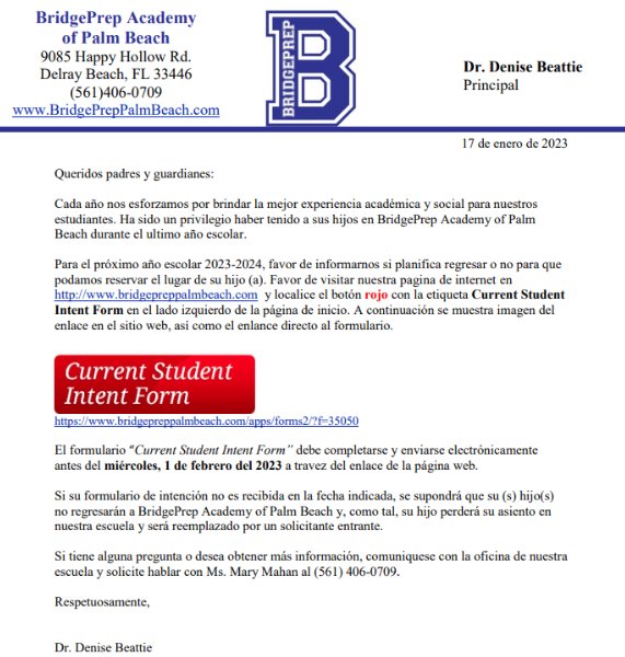 Each year we strive to provide the best academic and social experience for our students. It has been our privilege to have had your children at BridgePrep Academy of Palm Beach for this past school year.